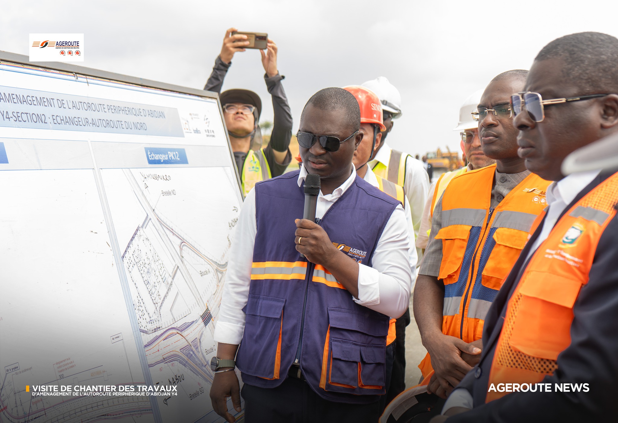 Ce jeudi 20 novembre 2025, le Ministre de l’Équipement et de l’Entretien Routier (MEER), Dr. Amédé Koffi KOUAKOU, a conduit une visite de terrain sur les sections 2 et 3 de l’Autoroute périphérique d’Abidjan Y4. Il était entouré de ses collaborateurs, notamment le Directeur Général de l’AGEROUTE, M. Fabrice COULIBALY, et accompagné, pour l’occasion, du Ministre du Commerce et de l’Industrie, Dr. Souleymane DIARRASSOUBA. Cette mission d’inspection visait à apprécier l’état d’avancement des travaux et à garantir le respect des délais ainsi que la qualité des ouvrages.