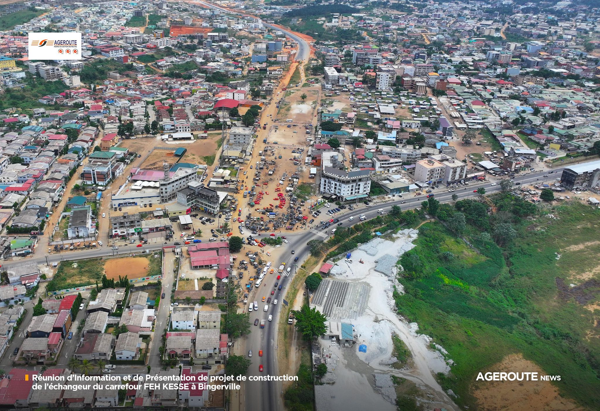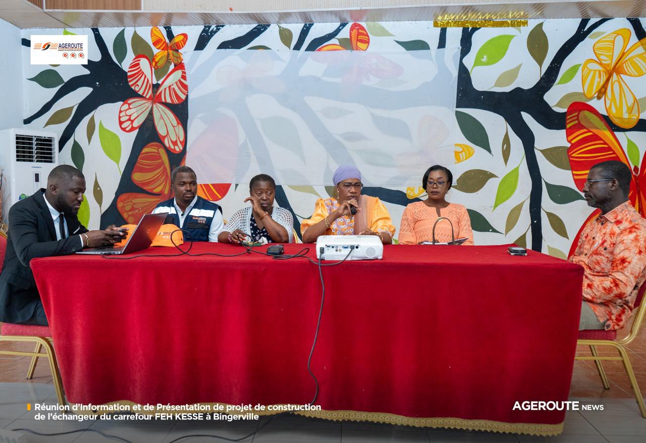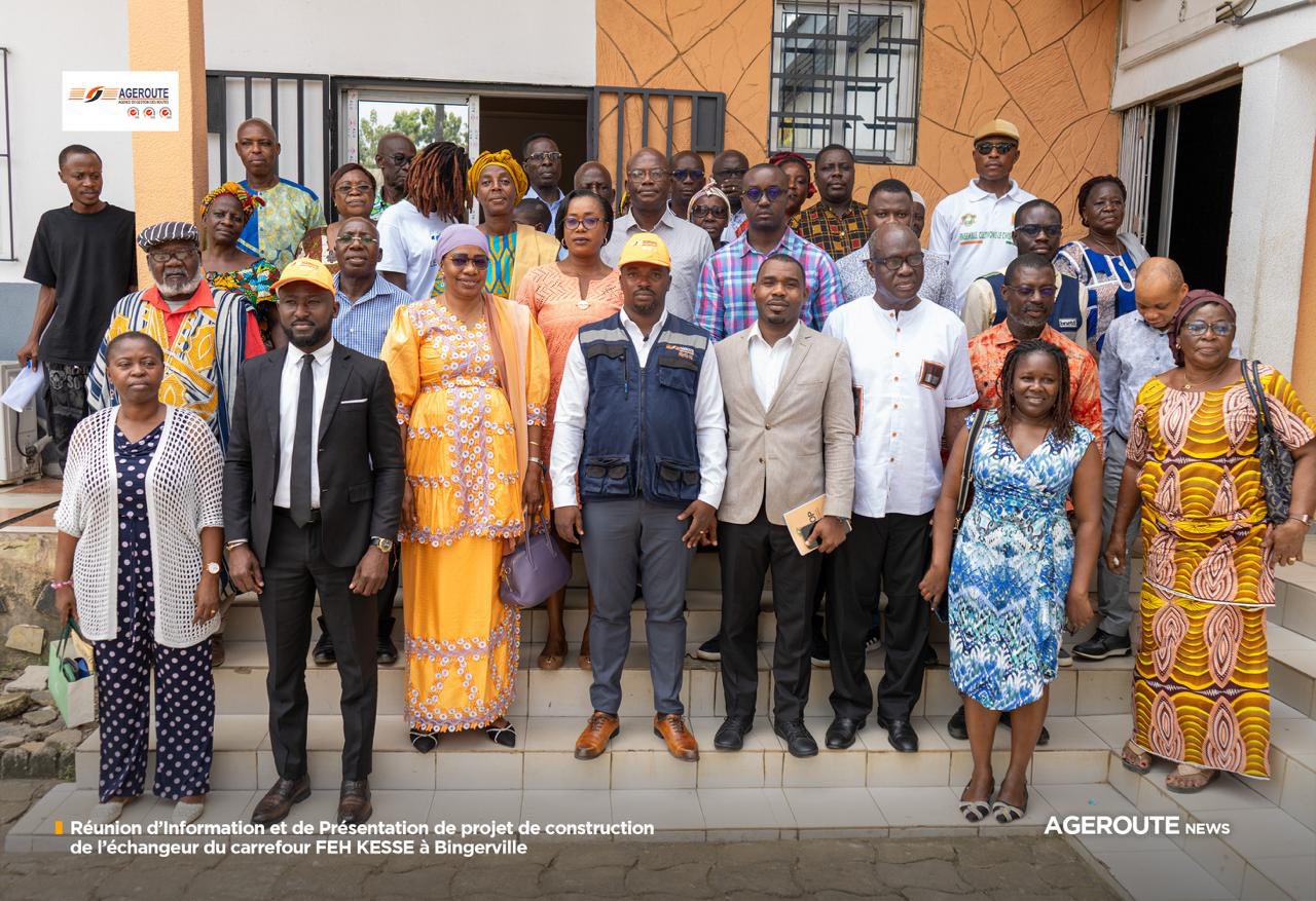 Dans le cadre du démarrage des travaux d’aménagement de l’échangeur du carrefour FEH KESSÉ, une séance d’information et de sensibilisation des populations s’est tenue ce mardi 11 février 2026 à Bingerville, à l’initiative de AGEROUTE, maître d’ouvrage délégué du projet.