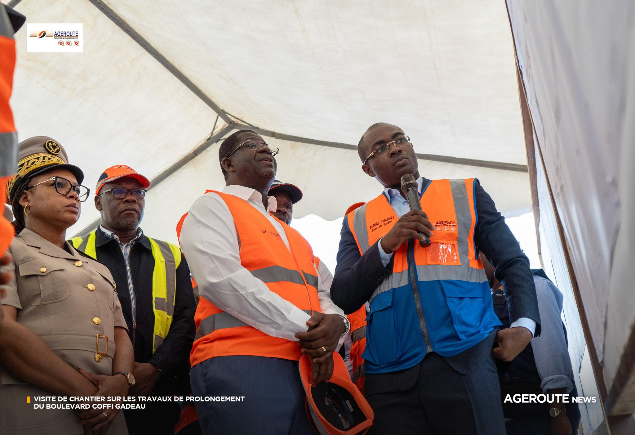 Accompagné de ses proches collaborateurs et du Directeur Général de l’AGEROUTE, Fabrice COULIBALY, le Ministre a tenu à s’imprégner personnellement de l’état d’avancement des travaux, alors que ce projet est désormais pratiquement à terme.