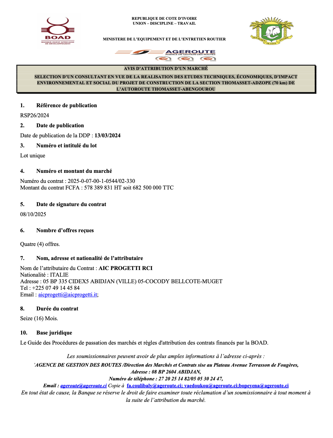 L’AUTOROUTE THOMASSET-ABENGOUROU